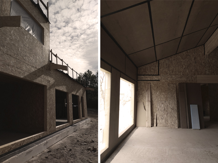 Sistemas constructivos: Cimentación de hormigón armado y estructura prefabricada de entramado ligero de madera.